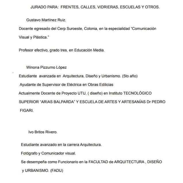 Los siguientes jóvenes serán jurados para el Concurso de Frentes, Calles, Vidrieras, Escuelas y otros: